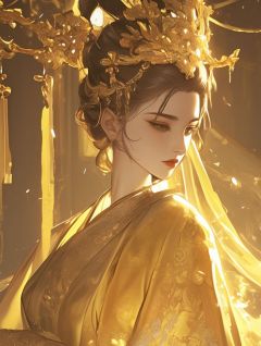 她满心欢喜地对着铜镜,照了又照。